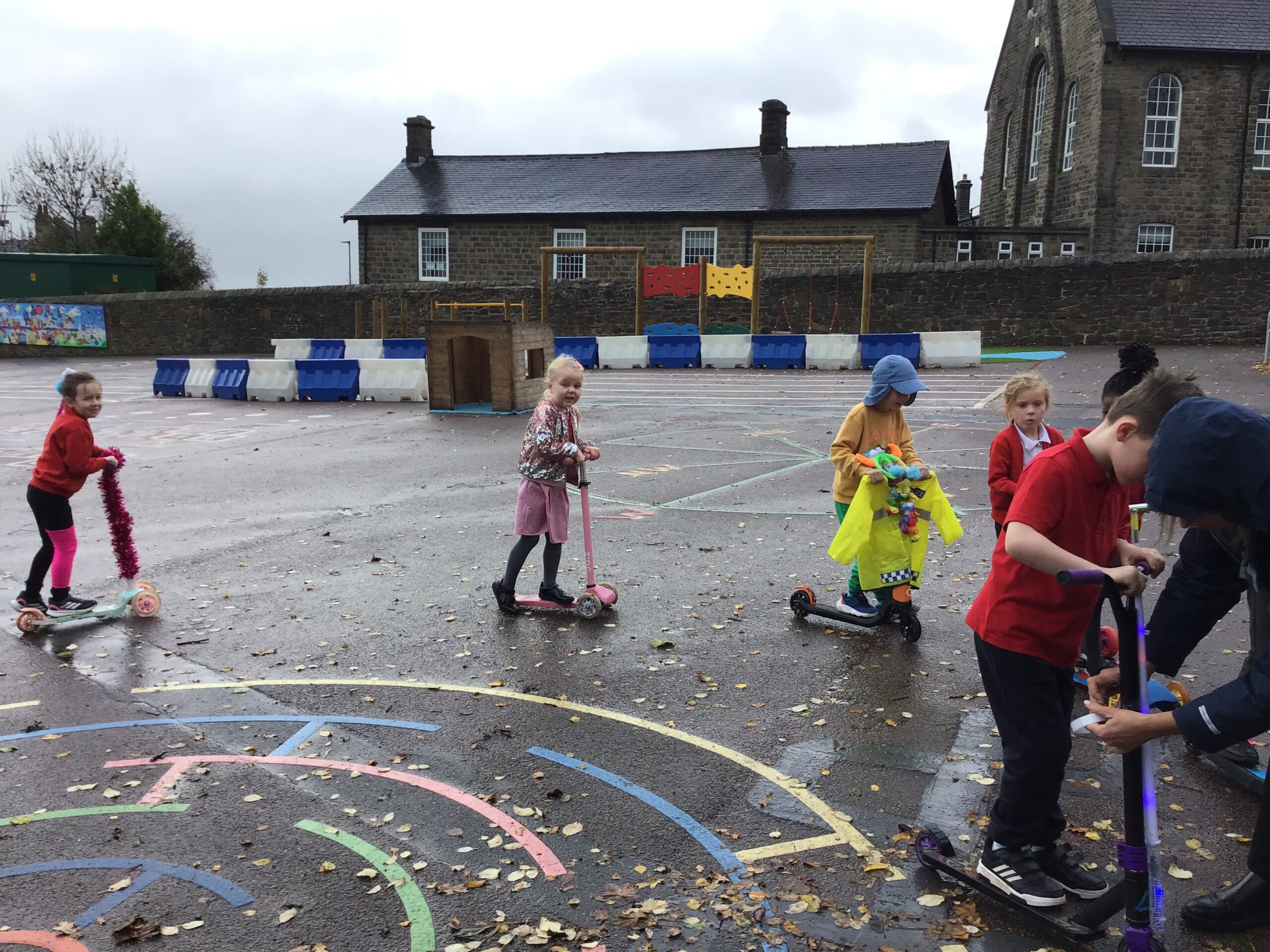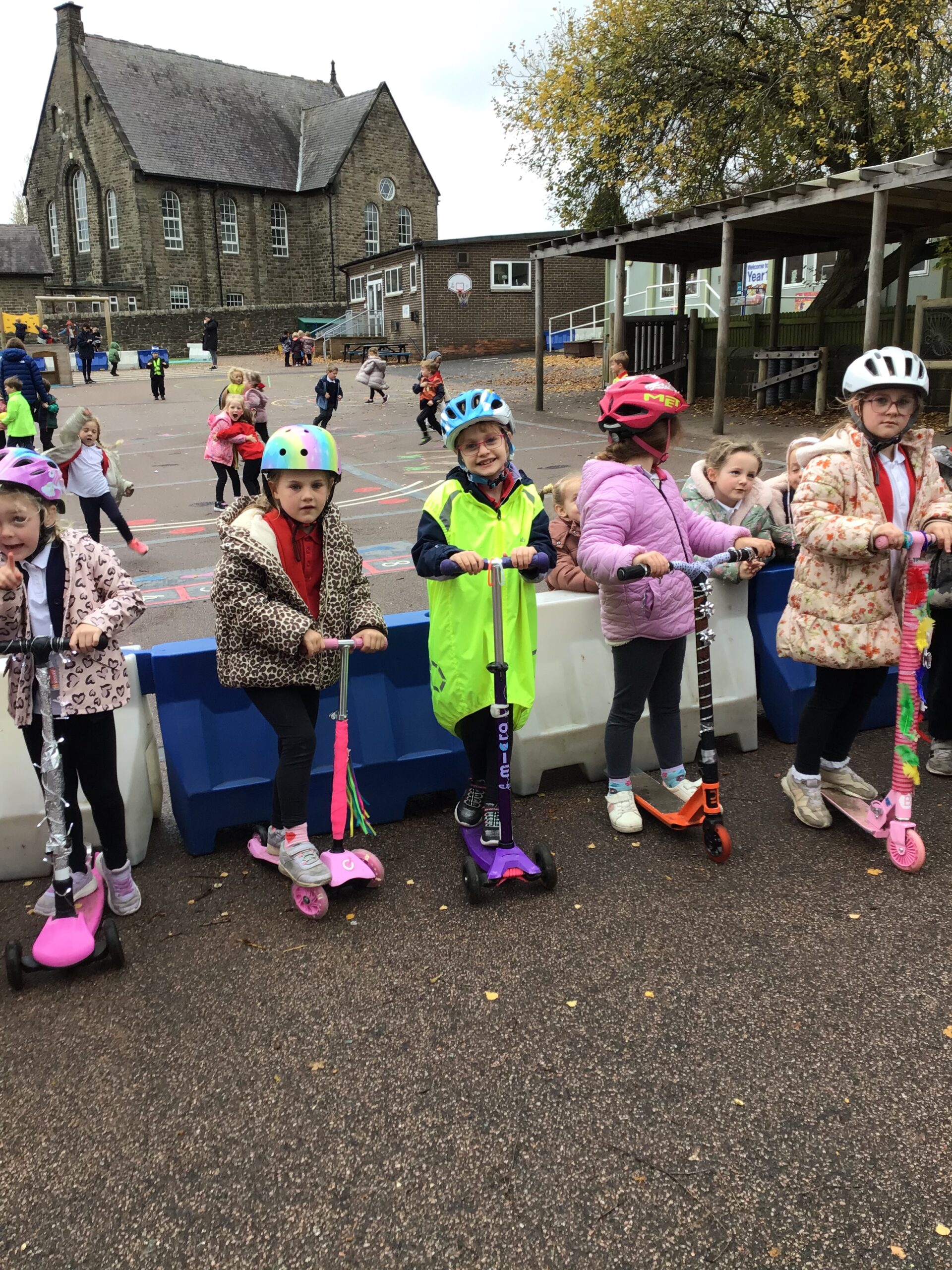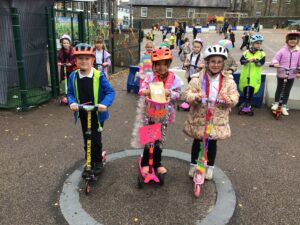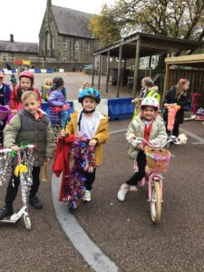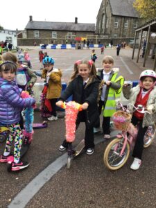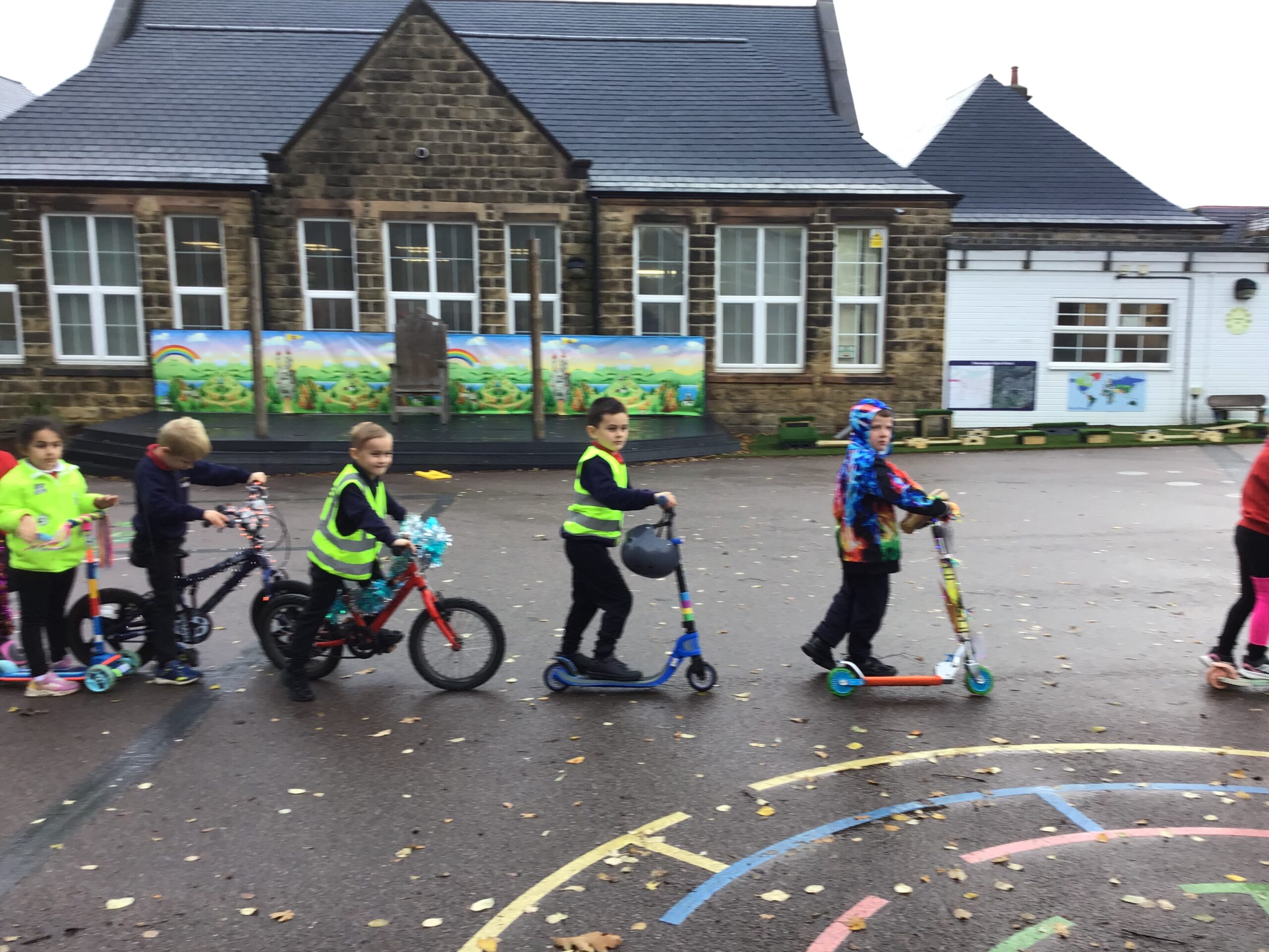 Well done to all the children (and thank you to the grown ups) for taking part in our road safety Be Bright Be Seen Day. We had lots of very bright children and some spectacular bikes and scooters.