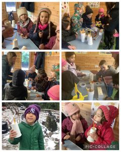 In the afternoon we decorated our whittled sticks and planted tomato seeds. We have had another great snow day at Forest Schools!
