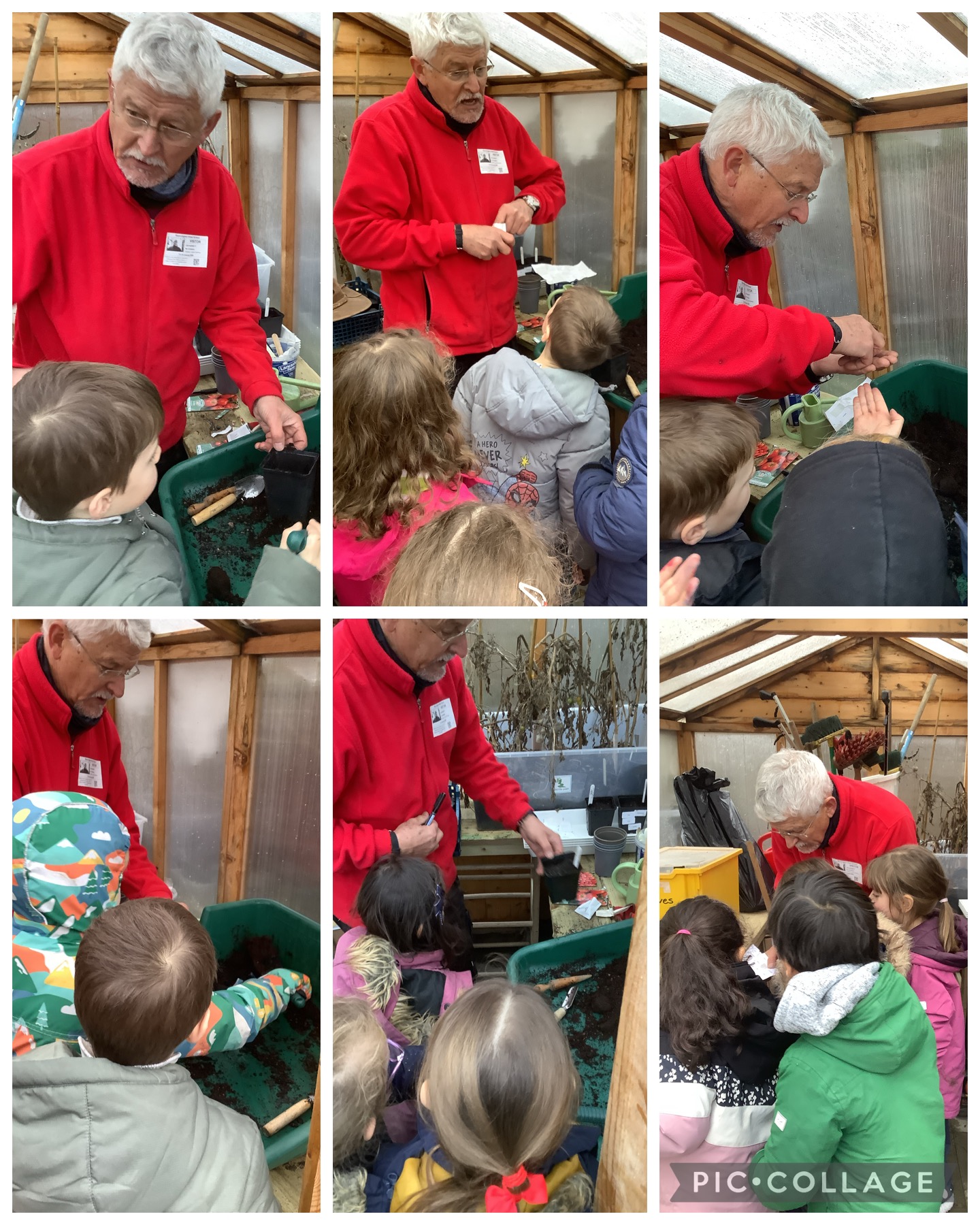 In the afternoon we planted some flowers in pots in the garden and did some bird watching. We managed to spot a Robin who sat on a branch and sang to us. We also played the woodcutter game with Mrs Platts.