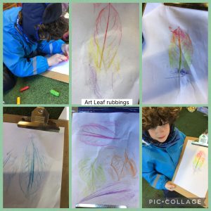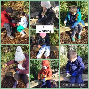 This week at forest schools we have been looking at the weather in Science and we drew our own symbols for the different weather types. In Art we have been thinking about texture and have created some rubbings using leaves from the garden. We found the holly leaves made the best leaf pattern. We have also learnt to whitte a stick.