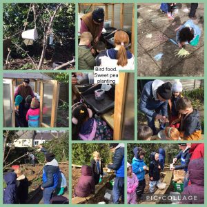 In the afternoon we went on the field with Mrs Platts to play the wood cutter game! We planted sweet peas and made some bird food hangers for the trees in the garden.