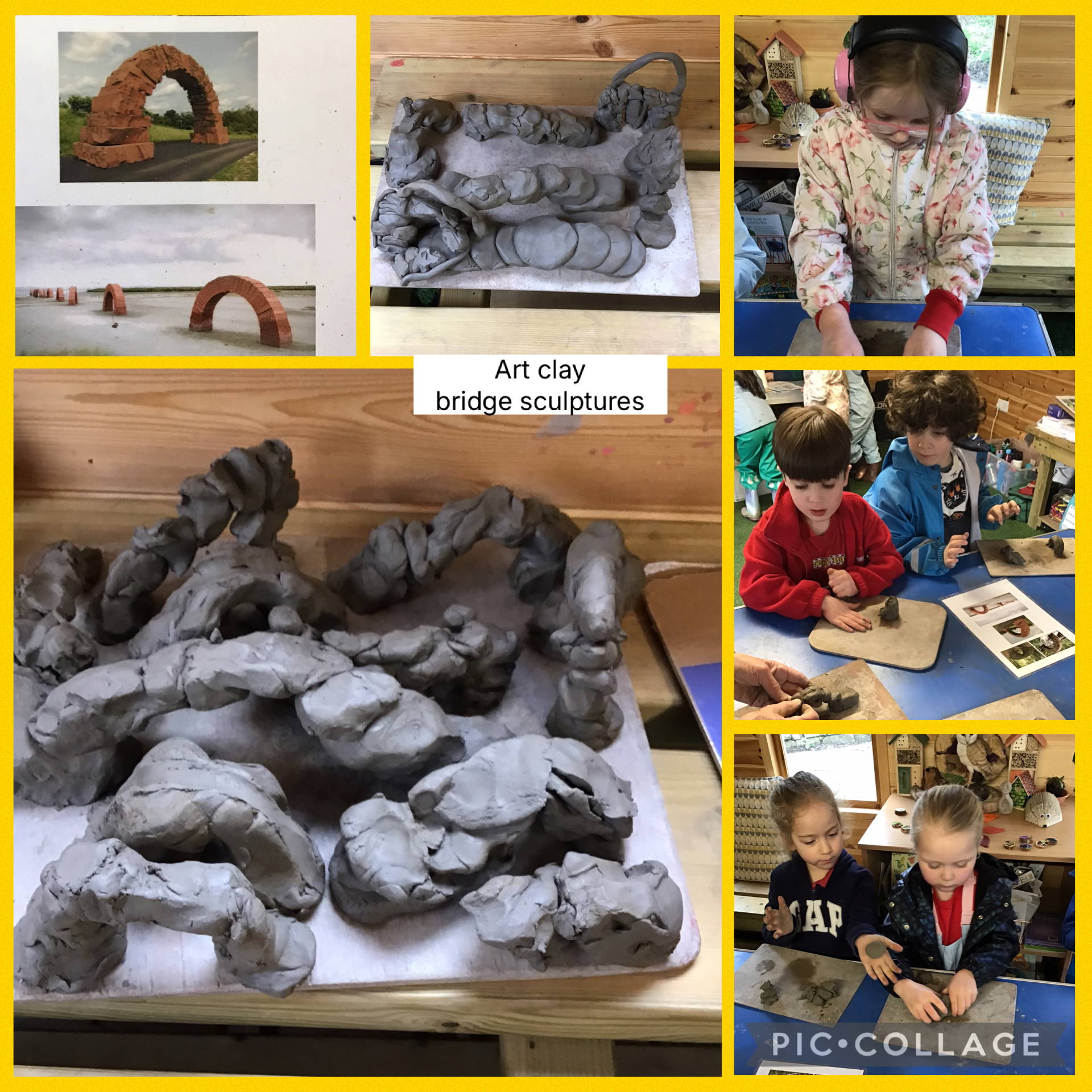 This week at forest schools we have been observing the weather and making weather vanes. We have also been learning about evergreen and deciduous trees. We have named and identified the trees in our school environment. We have lots of trees such as Silver Birch, Weeping Willow, Lime, Maple, Larch, Ash, Oak, Holly and Hawthorne. Mrs Platts has taught us some facts about each of the trees and how we can identify them. We have also looked at the artist Andy Goldsworthy again and created a clay bridge sculpture inspired by his work. We have created observational drawings of the Daffodils using pastels.